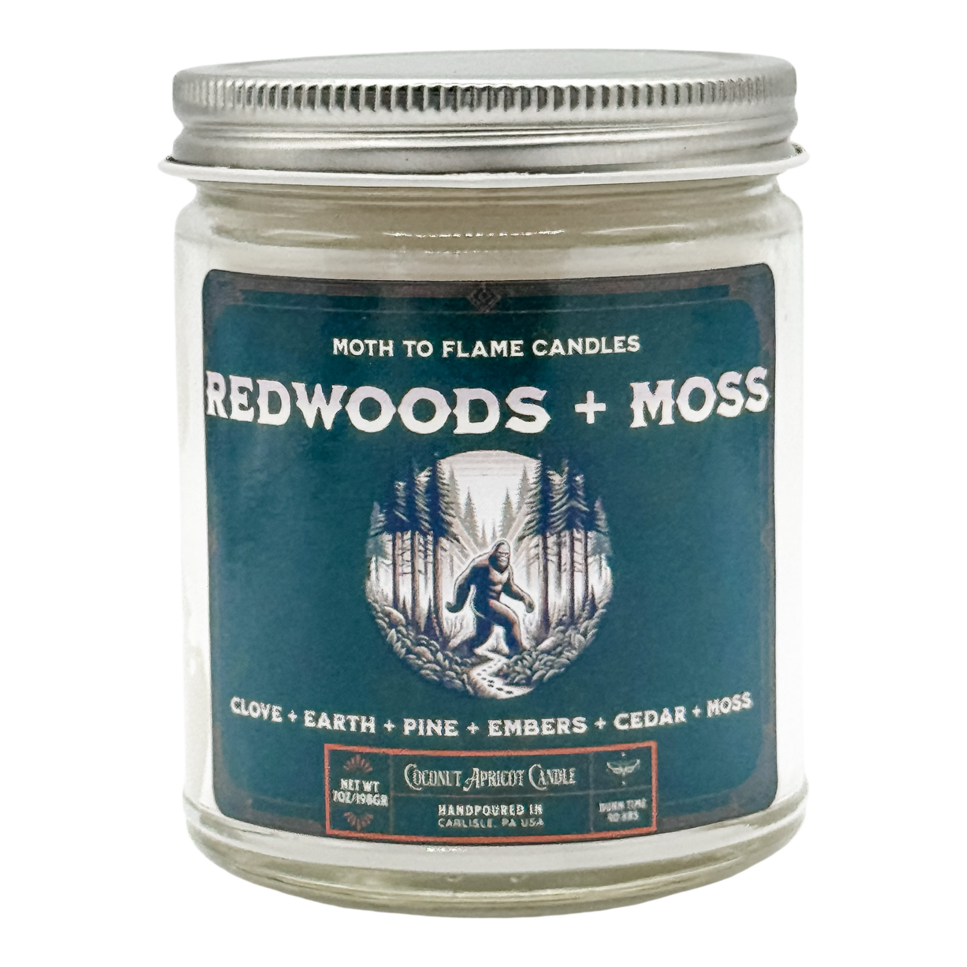 Redwoods + Moss captures the essence of old-growth woods in the heat of summer — where moss-covered trails meet the scent of distant smoke. Clove and earth open the air, pine and ember wrap the moment in firelight, and a grounding base of cedar and moss lingers like the forest itself.